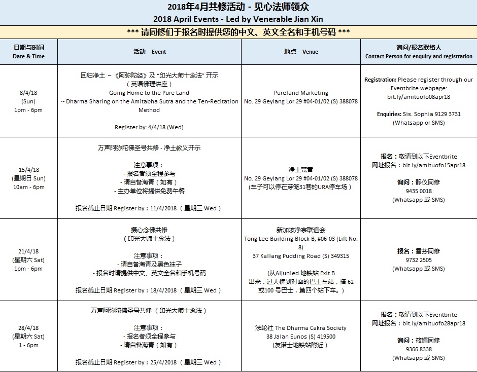 四月共修活动 April 2018 Events