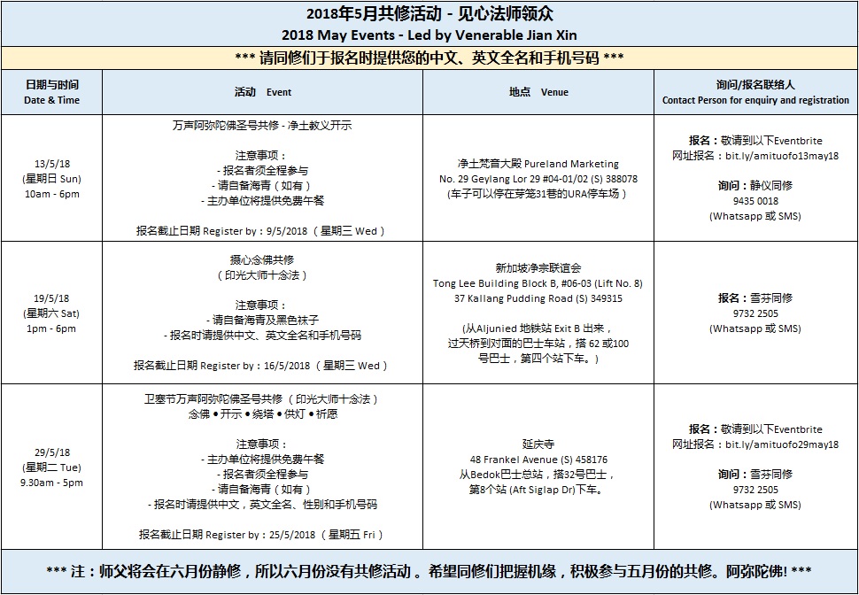 五月共修活动 May 2018 Events